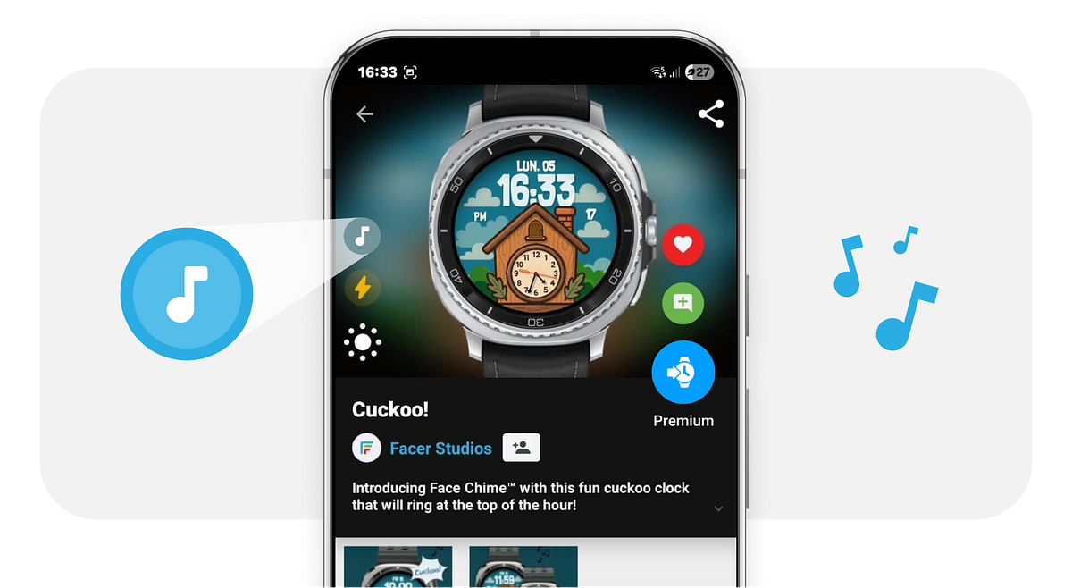 Today, we’re launching Face Chime™, a new exclusive Facer feature that gives watch faces their own branded hourly chime, bringing timekeeping to life beyond the screen.
