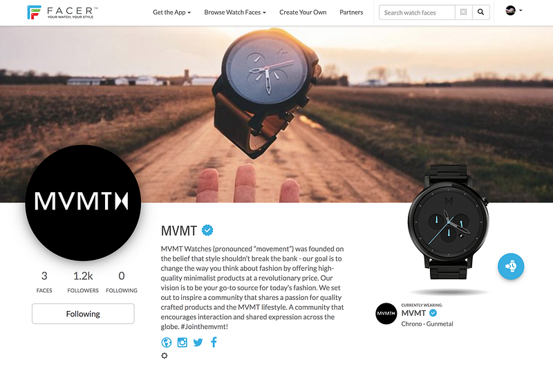 Starting today, all users have access to custom profile urls to make their brand more recognizable in the Facer ecosystem, e.g. MVMT’s official profile can be found at https://www.facer.io/u/mvmt